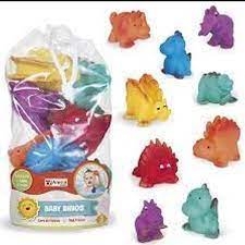 São mini dinos em vinil e tinta atóxico, livre de ftalatos.